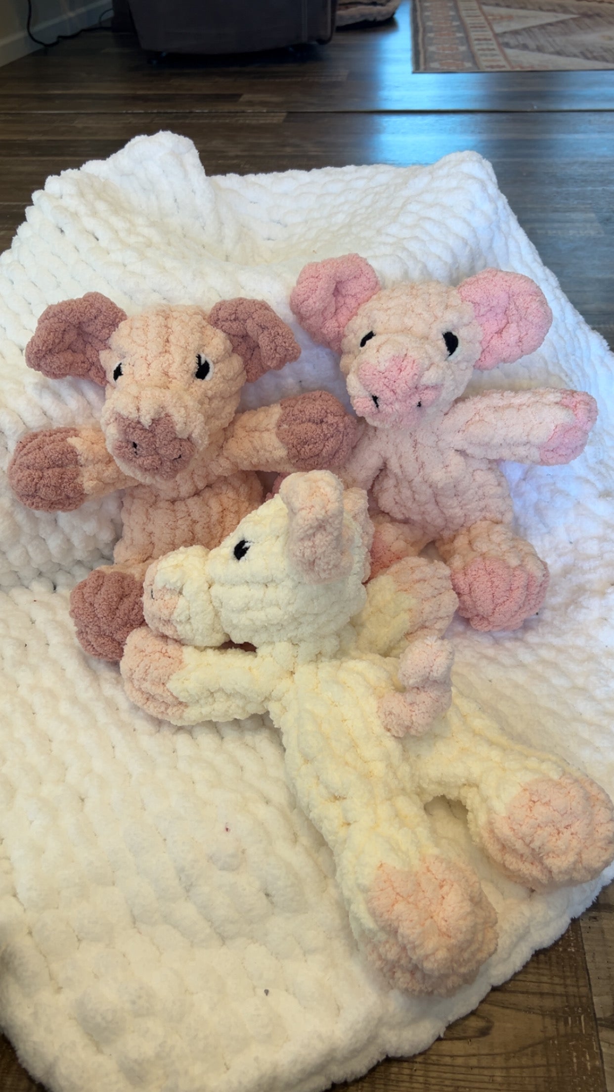Meet Parker the Pig, your new favorite snuggler! Made with soft, 100% polyester chunky yarn, Parker is perfect for endless cuddles and comfort. His head is filled with plush poly-fil, giving him a squeezable, huggable feel. With embroidered eyes for safety, Parker is a great companion for all ages.